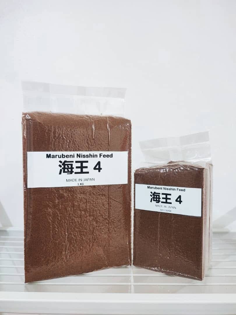 Marubeni Nisshin Feed KAIO No. 4 is a fish feed with a pellet size of 0.5mm-0.7mm, suitable for for fish one month and older. It is known for its high protein content (51-52%), and its ingredients include fish meal, krill meal, wheat flour, corn starch, and other components like fish oil, yeast, and vitamins. The feed is designed to be easy to eat, enhance fish color, and maintain water quality by not staining or clouding it.